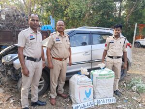 -पुलिस अधीक्षक कांकेर निखिल राखेचा (भापुसे) के निर्देशन एवं अतिरिक्त पुलिस अधीक्षक श्री योगेश साहू के मार्गदर्शन तथा उप पुलिस अधीक्षक श्री अविनाश ठाकुर के पर्यवेक्षण में जिले में चलाए जा रहे “उजियारा अभियान” के तहत अवैध मादक पदार्थों के विरुद्ध लगातार सख्त कार्यवाही की जा रही है।◽इसी क्रम में दिनांक 11.04.2026 को थाना नरहरपुर को मुखबिर से सूचना प्राप्त हुई कि एक क्रेटा वाहन क्रमांक OD 10 J 3344 में अवैध गांजा परिवहन कर भारतमाला रोड से डिब्बीपानी की ओर ले जाया जा रहा है।सूचना पर तत्काल कार्यवाही करते हुए पुलिस टीम द्वारा घेराबंदी की गई। पुलिस को देख वाहन चालक ने तेज एवं लापरवाहीपूर्वक वाहन चलाते हुए ग्राम डिब्बीपानी के पास दुर्घटना कर दी तथा वाहन छोड़कर मौके से फरार हो गया।वाहन की तलाशी लेने पर उसमें रखी 03 बोरियों से 13 नग पैकेट में कुल 67.380 किलोग्राम अवैध गांजा बरामद किया गया। साथ ही एक क्रेटा वाहन (कीमत लगभग ₹10,00,000) जप्त किया गया। इस प्रकार कुल जुमला कीमती ₹43,69,000 का माल बरामद कर गवाहों के समक्ष विधिवत जप्ती की कार्यवाही की गई। आरोपी चालक की तलाश जारी है।