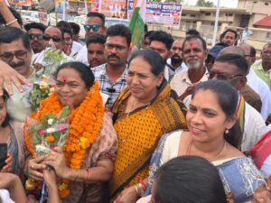 05 . चारामा में राज्यसभा सांसद फूलोदेवी नेताम का भव्य स्वागत।