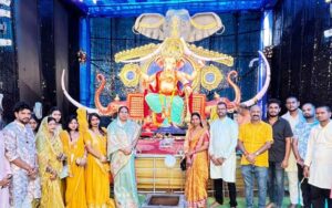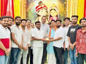 चित्र—आदर्श गणेशोत्सव समिति चारामा के पंडाल पर क्षेत्रीय विधायक एवं कार्यकर्ता।