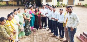 चित्र—पदभार ग्रहण करने के बाद नये प्राचार्य सुश्री हेमलता वाडिया का स्वागत करते हुए शाला स्टाफ।