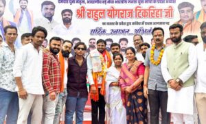 07.आज कांकेर नगर आगमन के दौरान युवा मोर्चा के प्रदेश अध्यक्ष राहुल  योगराज टिकरिहा का भाजयुमो कार्यकर्ताओं के द्वारा भव्य स्वागत किया गया। इस दौरान कार्यकर्ताओं ने उन्हें लड्डु से तौला।