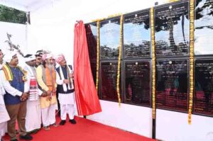 चित्र—मुख्यमंत्री विष्णु देव साय क्षेत्र में कई निर्माण कार्यों का भुमिपूजन करते हुए।