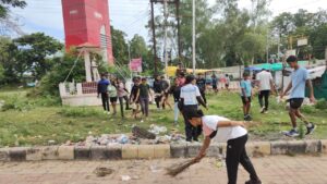 चित्र—नगर घडी चौक कांकेर के पास स्वच्छता अभियान चलाते सदस्य।