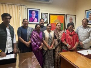 —दिल्ली में भानुप्रतापपुर की विधायक श्रीमती सावित्री मनोज मंडावी जी ने अपने विधायक साथियों के साथ आदिवासी कांग्रेस के राष्ट्रीय अध्यक्ष विक्रांत भूरिया जी से सौजन्य मुलाकात की। इस अवसर पर आदिवासी समाज से जुड़े महत्वपूर्ण विषयों, जनहित के मुद्दों एवं संगठनात्मक गतिविधियों पर विस्तार से चर्चा की गई। बैठक सौहार्दपूर्ण वातावरण में संपन्न हुई, जिसमें आदिवासी समाज के सामाजिक, शैक्षणिक एवं आर्थिक सशक्तिकरण को लेकर विचार-विमर्श हुआ।
