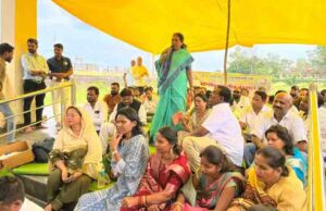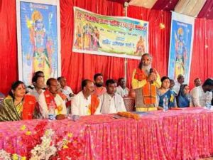 चित्र—चारामा में धर्मांतरण बढती प्रार्थना सभा स्थल पर चिंता व्यक्त कर ज्ञापन सौंपते हिंदु जागरण मंच सदस्य एवं आम लोग।