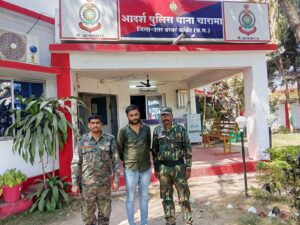 —पुलिस जानकारी के अनुसार घटना का संक्षिप्त विवरण में बताते चलें कि दिनांक 15/02/2026 को पुलिस पेट्रोलिंग पार्टी ग्राम चारभाठा की ओर रवाना हुआ था कि ग्राम चारभाठा पास पहॅुचने पर मुखबिर से सूचना मिला कि ग्राम चारभाठा में टक्कू साहू नाम का व्यक्ति अपने कृषि फार्म में सट्टा पट्टी लिखकर जुआ खेलवा रहा है कि सूचना पर ग्राम चारभाठा में स्थित टक्कू साहू के कृषि फार्म जाकर गवाहों एवं स्टाफ के साथ सूचना तस्दीक किया एक व्यक्ति कृषि फार्म के स्थित मकान के अंदर सट्टा पट्टी पर्ची लिखकर विभिन्न अंकों में रूपये पैसे का दांव लगाकर जुआ खेलवाते मिला जिसे पकड़ कर नाम, पता पूछताछ करने पर वह व्यक्ति अपना नाम मुकेष उर्फ टक्कू साहू पिता मलखम साहू उम्र 35 वर्ष निवासी बंगला पारा चारामा थाना चारामा जिला कांकेर का होना बताया जिसकी तलाषी लेने पर उसके कब्जे से कुल 01 नग पेन, 01 नग हजारों रूपये की सट्टा पट्टी पर्ची एवं 01 नग आईफोन व नगदी रकम 5350.00 रूपया बरामद किया गया। जिसे गवाहों के समक्ष जप्त कर कब्जा पुलिस में लिया गया। मौके पर आरोपी का कृत्य अपराध धारा 6 छ0ग0 जुआ प्रतिषेध अधिनियम 2022 का घटना करना पाये जाने से दिनांक 15.02.2026 को अपराध क्रमांक 29/2026 धारा 6 छ0ग0 जुआ प्रतिषेध अधिनियम 2022 पंजीबद्व कर विवेचना में लिया गया। प्रकरण आरोपी द्वारा लोगों को संगठित कर अंको का पैसों का दांव लगाकर हारजीत का जुआ खेलने से धारा 112 बीएनएस जोड़ा गया । आरोपी को गिरफ्तार कर न्यायिक रिमाण्ड़ में भेजा गया है।