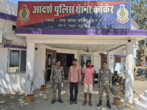 — पुलिस जानकारी के अनुसार घटना का संक्षिप्त विवरण में बताते चलें निखिल राखेचा (भापुसे.) पुलिस अधीक्षक के निर्देशन पर जिला में चल रहे उजियारा अभियान के तहत् दिनांक 15.02.2026 को सिटी कोतवाली थाना कांकेर को सूचना मिला कि ग्राम नाथियानवागांव कोसा सेंटर ईमली मोड के पास 02 व्यक्ति मोटर सायकल में अवैध रूप से मादक पदार्थ गांजा छुपाकर आम जनता को बिक्री कर रहे हैं। जारिये मुखाबिर कि सूचना पर पर प्राप्त सूचना वरिष्ठ अधिकारियों को अवगत कराकर थाना कांकेर से उपनिरीक्षक दयालू राम साहू के नेतृत्व में टीम गठित कर ग्राम नाथियानवागांव ईमली मोड में घेराबंदी कर आरोपी 01.भूपेन्द्र जैन पिता श्री संजय जैन उम्र 25 वर्ष जाति कलार, 02. रमाकांत साहू पिता अजय साहू उम्र 27 वर्ष दोनो निवासी माकडी सिंगराय थाना कांकेर जिला उ.ब.कांकेर के कब्जे से एक प्लसर मोटर सायकल एंव एक काला रंग का स्कूटी डिग्गी में सफेद कलर का प्लास्टिक झिल्ली के अन्दर कुल 496 ग्राम गांजा एवं एक नग विवो कम्पनी का मोबाईल को जप्त कर आरोपियों के विरूद्ध एनडीपीएस एक्ट की धारा 20(बी) के तहत अपराध पंजीबद्ध कर विवेचना में लिया गया। विवेचना के दौरान प्रकरण में विधिवत् कार्यवाही कर आरोपियों को न्यायिक रिमाण्ड में माननीय न्यायालय पेश किया गया। पुलिस टीम में निरीक्षक जितेन्द्र कुमार साहू, उप.निरी. दयालू राम साहू, प्रधानआर. 624 जीवधन यादव, आर.राकेश बघेल, आर. 824 मनोज ध्रुव, आर 1024 शैलेन्द्र चतुर्वेदी एवं सायबर सेल प्रभारी यशवंत श्याम, प्र.आर. सचिनशोरी, आर. रामरतन निषाद, ज्ञान ठाकुर।