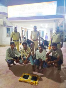 —पुलिस जानकारी के अनुसार घटना का संक्षिप्त इस प्रकार है – निखिल राखेचा (भापुसे.) पुलिस अधीक्षक के निर्देषन पर जिला में चल रहे उजियारा अभियान के तहत् दिनांक 15.03.2026 को जरिये मुखबिर से सूचना मिला कि ग्राम पण्डरीपानी तालाब के पास खेत में कुछ लोग ताश के 52 पत्ती ताश में रूपये पैसे का हार जीत का दांव लगाकर काट पत्ती जुआ खेल रहे हैं कि सूचना थाना प्रभारी को मिलने पर थाना से उपनिरीक्षक मनोरथ जोशी के नेतृत्व में टीम गठित कर ग्राम पण्डरीपानी में मुखबीर के बताये स्थान पर घेराबंदी कर पकडे गये आरोपी 1. पंकज यादव, 2.घनश्याम कावडे, 3. शक्ति कावडे, 4. युवराज देवागंन उक्त आरोपियों के बब्जे से 230 रूपयें एवं 52 पत्ती ताश, 04 नग मोबाईल एवं 07 मोटर सायकल को जप्त किया गया आरोपियों का कृत्य जुआ एक्ट का पाये जाने से अपराध पंजीबद्ध कर विधिवत् कार्यवाही किया गया है।