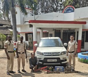-घटना का संक्षिप्त विवरण कांकेर जिले में अपराध नियंत्रण हेतु पुलिस अधीक्षक निखिल अशोक कुमार राखेचा (भा.पु.से.) के निर्देशन में, अतिरिक्त पुलिस अधीक्षक योगेश साहू के मार्गदर्शन तथा अनुविभागीय अधिकारी पुलिस कांकेर श्री मोहसीन खान के पर्यवेक्षण में जिले में चलाए जा रहे अपराध मुक्त समाज बनाने उजियारा अभियान के तहत अवैध शराब के विरुद्ध लगातार कार्यवाही की जा रही है।दिनांक 16.03.2026 को थाना कोरर पुलिस को मुखबिर से सूचना प्राप्त हुई कि ग्राम मरकाटोला निवासी सुग्रीव हिचामी अपने घर के आंगन में अवैध रूप से अंग्रेजी शराब बिक्री हेतु संग्रहित कर रखा है। सूचना की गंभीरता को देखते हुए वरिष्ठ अधिकारियों को अवगत कराया गया।रेड के दौरान आरोपी के घर के आंगन से एक प्लास्टिक थैला एवं बोरी में रखी अवैध अंग्रेजी शराब बरामद की गई, जिसमें—21 नग सिम्बा बीयर (कुल 13650 एमएल)17 नग गोल्डन गोवा (कुल 3060 एमएल) 11 नग प्लेन शोले (कुल 1980 एमएल) कुल 18690 एमएल अंग्रेजी शराब, जिसकी अनुमानित कीमत 7120/- है, मौके से जप्त की गई। आरोपी से पूछताछ में उक्त शराब को बिक्री हेतु रखना स्वीकार किया गया, जिसके आधार पर उसे गिरफ्तार कर दिनांक 17.03.2026 को न्यायिक रिमाण्ड पर भेजा गया।