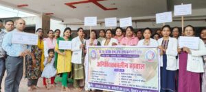 चित्र—नरहरपुर में धरनारत एनएचएम कर्मचारी।