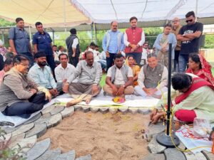 नगर के नए बस स्टैंड में 68.98 लाख की लागत से बनाये जाने वाले डोम शेड निर्माण कार्य का भूमि पूजन