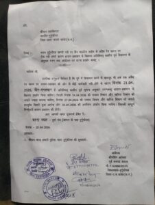 चित्र—तहसीलदार के नाम सौंपे गए ज्ञापन की प्रति।