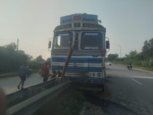 04.संघर्ष की जिंदगी त्यौहार भी नहीं देखती। ड्रायवर की जिंदगी का एक हिस्सा हाईवे सडकों पर भी नजर आता है। जब लोग दीपावली मना रहे थे, तब चारामा लखनपुरी के बीच हाईवे पर एक ट्रक डिवाईडर के अंदर घुस गई जिसे निकालने दूसरे दिन सुबह से मशक्कत करना पडा। मालिक की अलग सुने। पता नहीं जब से सडक चौडीकरण हुआ और बीच के गावों में वन वे फोरलेन का स्वरूप देकर डिवाईडर बनाया गया जहां अंधेरो के चलते वाहन चालकों को डिवाईडर नहीं दिखायी देता। पता नहीं चारामा से लखनपुरी के बीच अभी तक कितने ही ट्रकें हादसों का शिकार हुई है। लेकिन सडक निर्माणी कंपनी अभी तक स्ट्रीट लाईट लगाने के लिए गंभीर नही दिखायी देती।