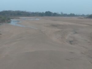 —पहली दफा इस वर्ष ऐसा हो रहा है कि मार्च में ही महानदी पुरी तरह सूख गई है। महानदी के किनारे काफी संख्या में कृषि पंप लगा कर किसान अपने खेतों की प्यास बुझा रहे हैं। महानदी में अमूमन घाट में बेतरतीब तरीके से रेत उत्खनन के चलते रेत के साथ पानी भी हाईवा ट्रकों से रिसते सडक से होते दूर जा रहा है। इस वक्त महानदी में चुल्लू भर भी पानी नहीं बचा था, कि दुधावा जलाशय प्रशासन द्वारा किसानों के हित में महानदी में पानी छोडा गया है। यह पानी की जलधार आज अभी अरौद घाट पुल के पास पहूंची है। इस चित्र में आप देख सकते हैं कि कैसे पानी की अल्पधार आगे बढ रही है। जिस तरीके से इस भरी गर्मी में नदी में पानी सोख रहा है,हाराडुला पहूंचने में अभी चार दिन और लगेंगे।