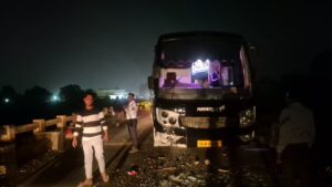 02. मोटरसायकल एवं महेंद्रा बस हादसे में दो की स्थल पर ही मौत‚दो घायल। एक ही परिवार से बताये जा रहे हैं।