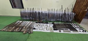 इसके साथ साथ नक्सलियों के विभिन्न डंप बरामद किए गए, जिसमें ऑटोमैटिक राइफल 1-AK 47, 1- इंसास, 1- SLR देशी राइफल, 9- BGL लॉन्चर, 7- देशी कट्टा, भारी मात्रा में BGL सेल, ऑटोमैटिक हथियारों के राउंड, ग्रेनेड, डेटोनेटर, मैगजीन एवं 5 लाख रुपए नगद बरामद किए गए।मुख्यधारा में लौट आये माओवादी कैडर्स के पुनर्वास, सुरक्षा एवं सम्मानजनक जीवन के लिए अवसर प्रदान कर भारत सरकार एवं छत्तीसगढ़ शासन की नीतियों के अनुरुप सार्थक प्रयास किये जा रहे हैं।पुलिस लाइन कांकेर में आज ‘‘पूना मारगेम-पुनर्वास से पुनर्जीवन’’ पहल के अंतर्गत आयोजित पुनर्वास कार्यक्रम निखिल राखेचा (भा.पु.से) पुलिस अधीक्षक कांकेर, टी. मोहन कमांडेंट BSF भानुप्रतापपुर सेक्टर, श्री रवि भूषण कमांडेंट 178 वाहिनी BSF, प्रियव्रत शर्मा कमांडेंट 33वीं वाहिनी SSB, आकाश श्रीश्रीमाल (भा.पु.से.) अतिरिक्त पुलिस अधीक्षक भानुप्रतापपुर एवं योगेश साहू (रा.पु.से.) अतिरिक्त पुलिस अधीक्षक कांकेर, दिनेश सिन्हा (रा.पु. से.) अतिरिक्त पुलिस अधीक्षक, गिरिजा शंकर साव (रा.पु.से.) डीएसपी नक्सल ऑपरेशन कांकेर, अविनाश ठाकुर (रा.पु.से.) डीएसपी डीआरजी कांकेर एवं अन्य अधिकारीगण की गरिमामयी उपस्थिति में सम्पन्न हुआ।